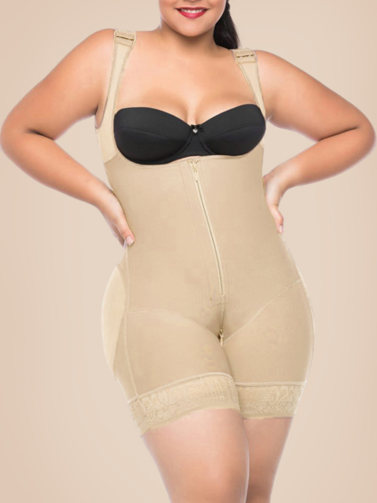Compression Bodysuit Zipper Closure With Wide Adjustable Shoulder Straps Postpartum Tumt Control Shapewear For Women