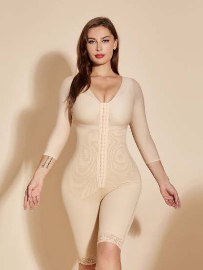 Fajas Colombianas Full Body Shaper Tummy Control Stage 2 Faja Shapewear for Women Long Sleeves - Tan