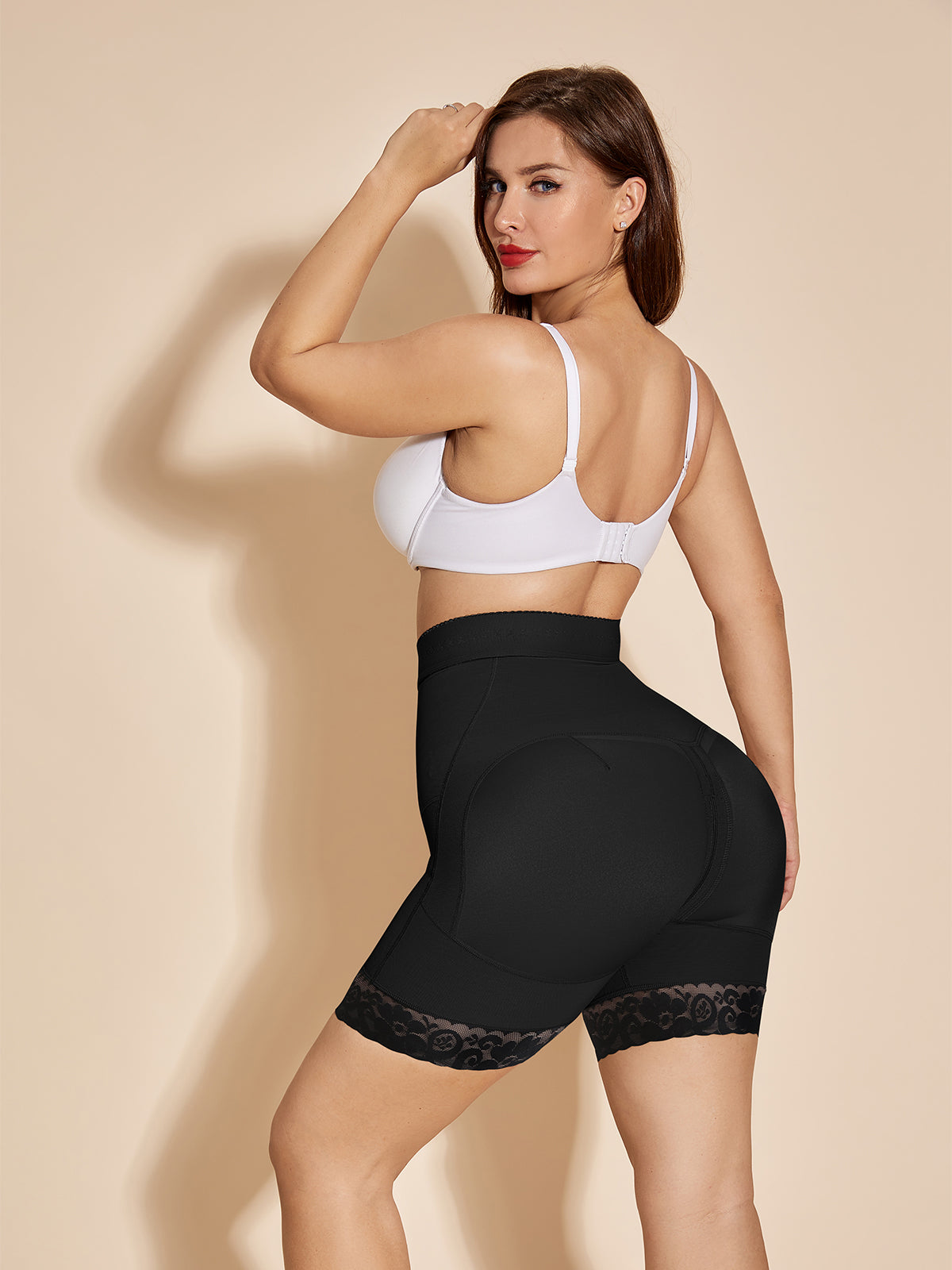 High Waist Women Booty Lifter Bodysuit Thigh Control Shorts - Black