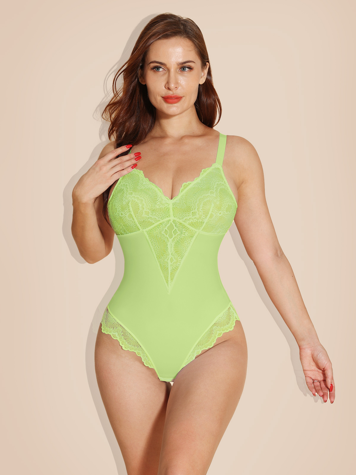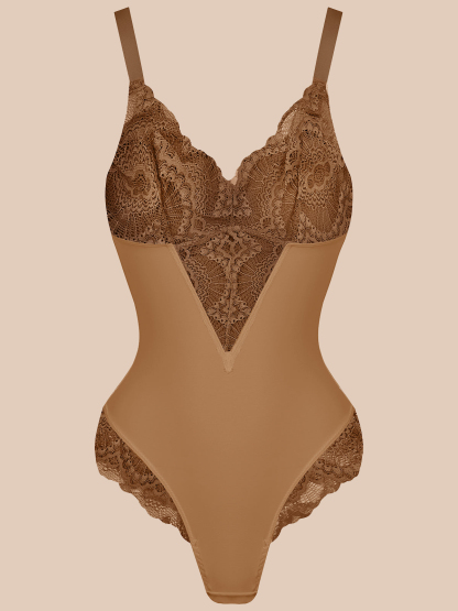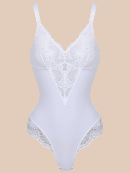 ChicCurve Lace V-neck Bodysuit Tummy Control Backless Ref10056