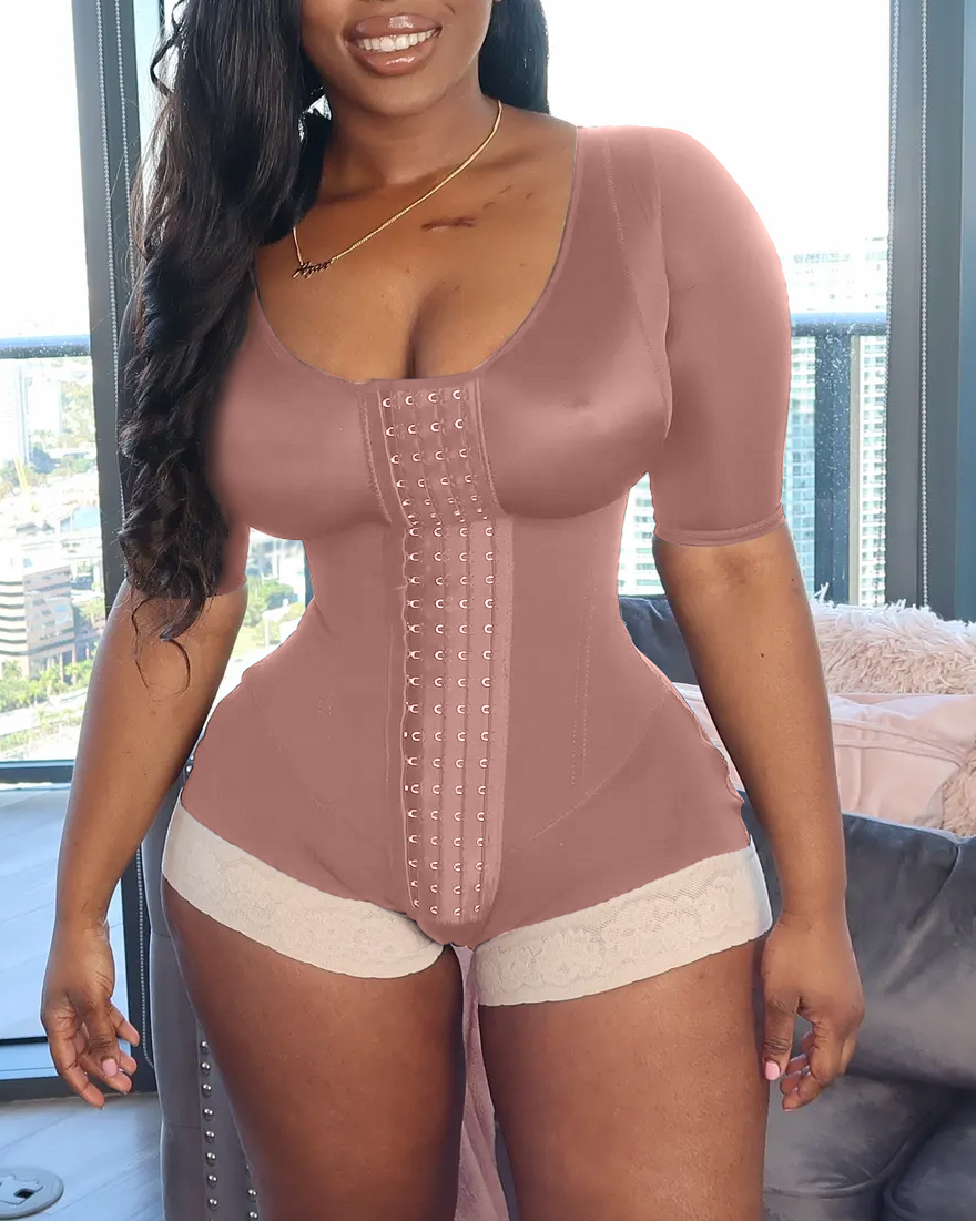 Mid-Sleeve Women Waist Trainer Bodysuit Shapewear Tummy Control Corset Cincher Postpartum Underwear Fitness Body Shaper