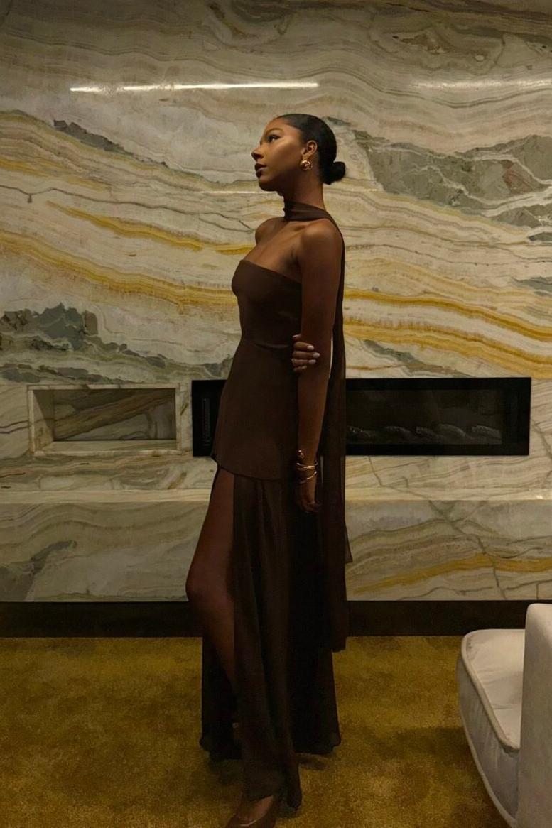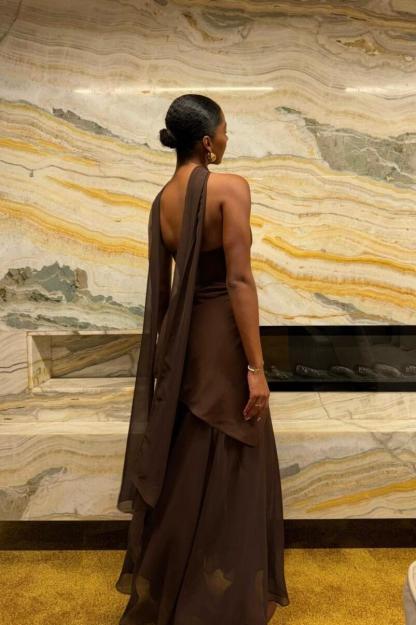 Make a statement of elegance and sophistication with this Strapless Halter Tie-Back Maxi Dress. Featuring a stunning strapless design with a halter neck. this dress effortlessly combines modern chic with timeless charm. The flowing ribbons at the back create a dramatic. graceful touch. adding movement and flair to your every step. Perfect for formal events. evening dinners. or a night out. this dress exudes confidence and style.