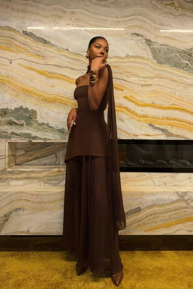 • Style: Off-shoulder floor-length dress