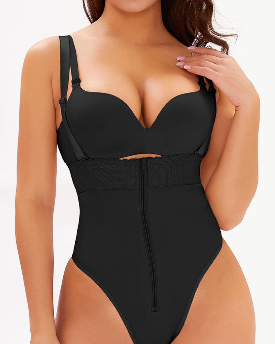 Thin Straps Open Bust Tummy Control Zipper Shapewear Bodysuit Ref2105