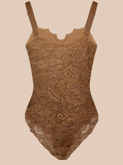 ChicCurve Women's V-neck Lace Backless Tummy Control Bodysuit Camisole - Ref10057