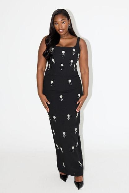 Pair with strappy metallic heels and a clutch to complete the outfit. Opt for sleek. pulled-back hair and minimal jewelry to let the crystal embellishments take center stage.