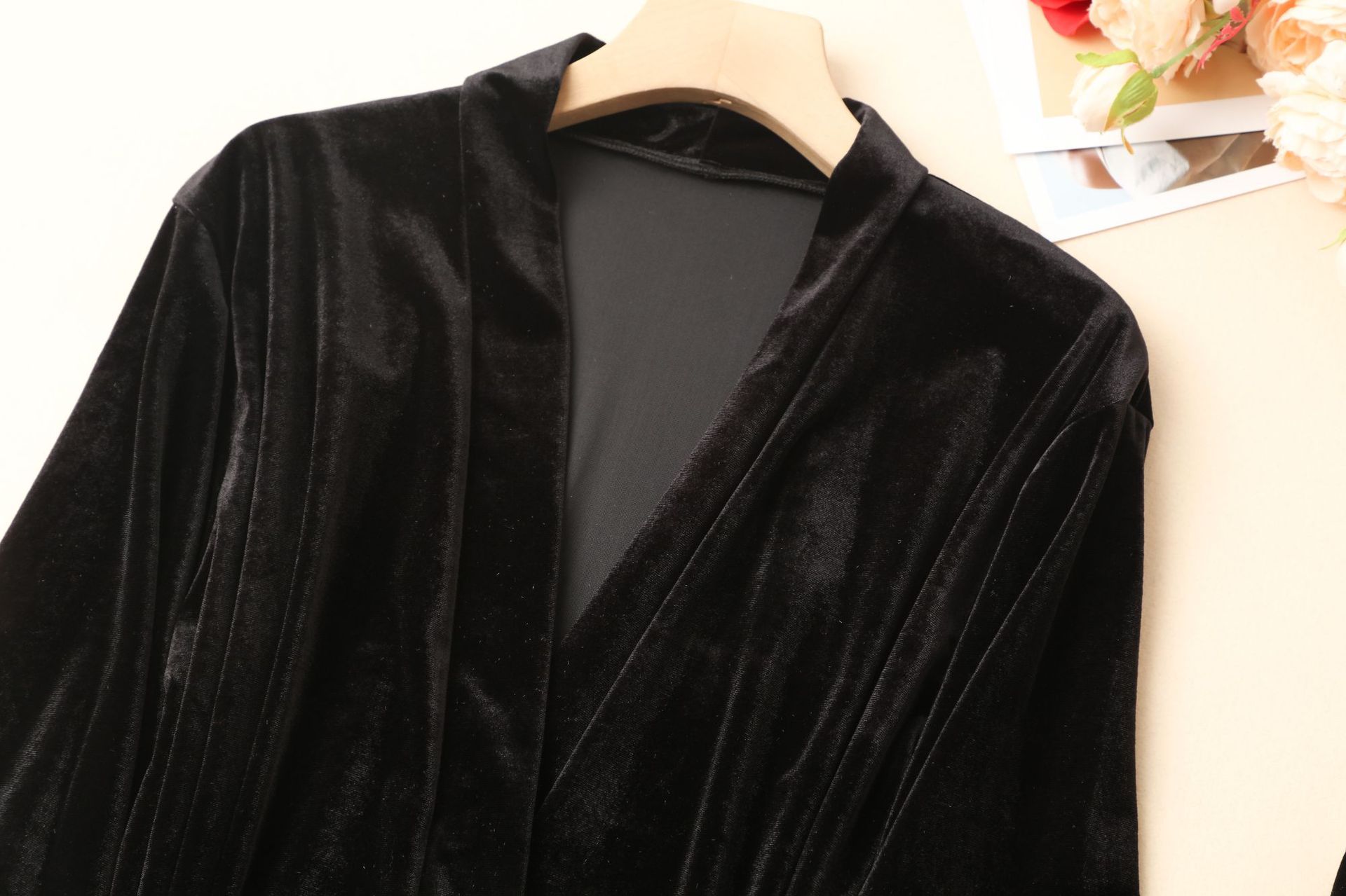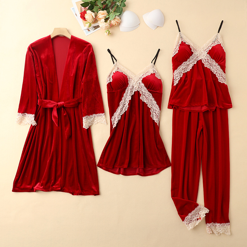 Four-piece pajama set in gold velvet