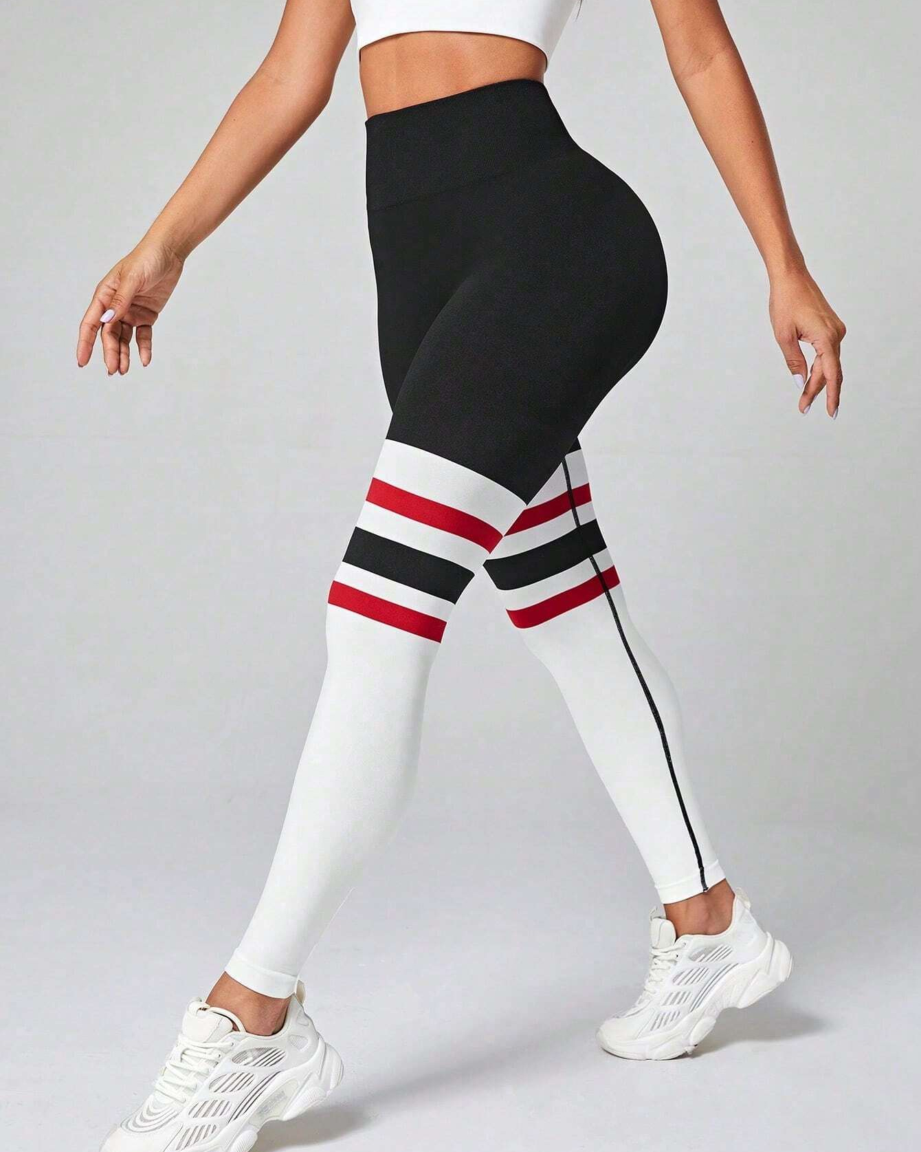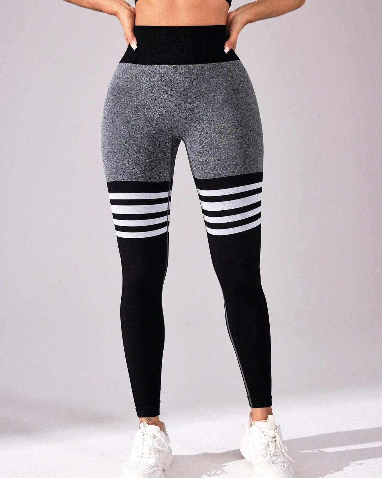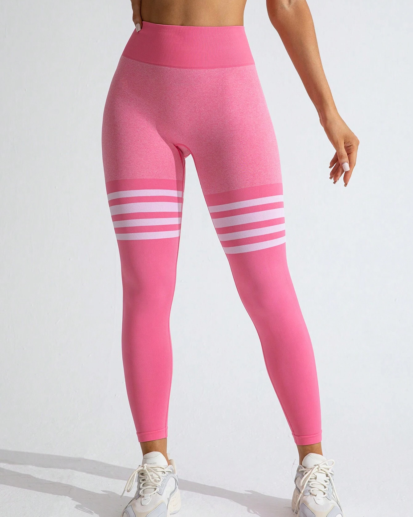 High Waist Back V Butt Lifting Fitness Striped Yoga Leggings