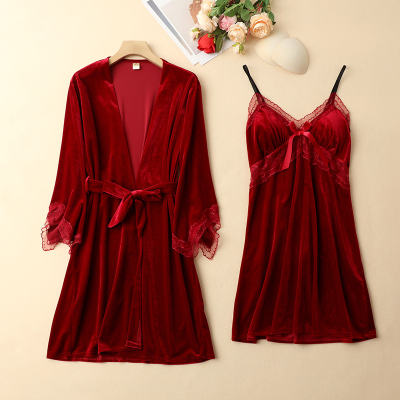 Premium Feeling Golden Velvet Pajamas Two Piece Set
