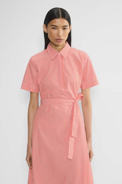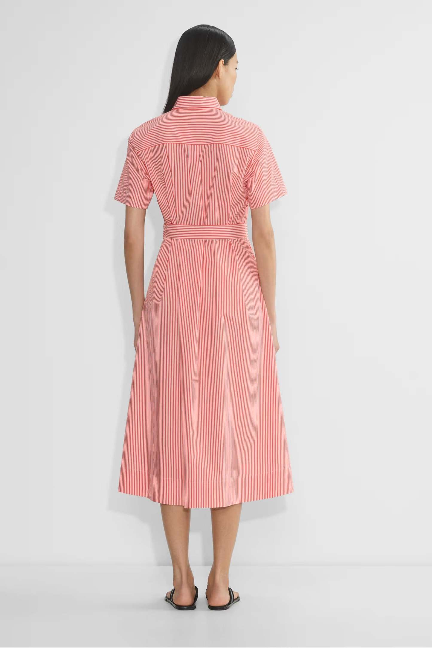 Your favorite shirt—reimagined as a polished dress. The Typist Poplin Polo Midi Dress blends classic tailoring with feminine ease. Crafted from crisp. breathable 100% cotton poplin. this short-sleeve polo dress features a front button placket. removable belt. and convenient inseam pockets for a functional yet refined look.