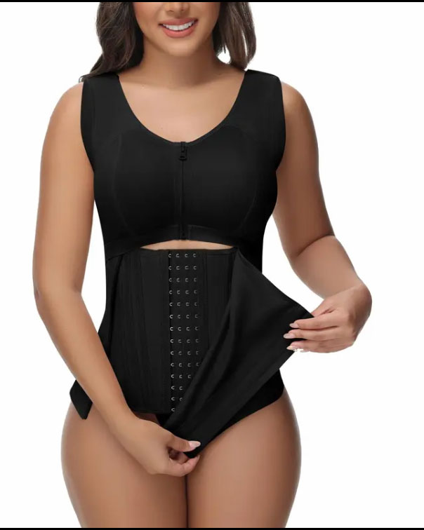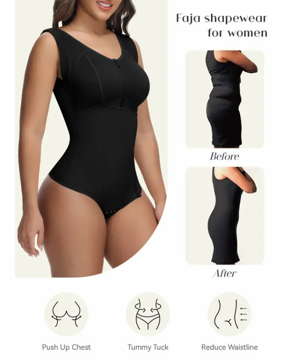 Zipper Model Sleeveless Breast Wrapped Back Herringbone Shapewear