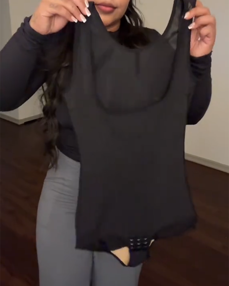 Shapewear bodysuit tummy control. The front of our body shaper bodysuit boasts a chic cross double-layer design to reinforce tummy control, aiding in sculpting a slimmer waistline. The x-shaped back design of plus size shapewear bodysuit aligns and supports your back, wrapping your body for improved posture and a streamlined profile. This thoughtful construction not only enhances your body's contours but also promotes a confident posture, ensuring you look and feel your best from every angle.