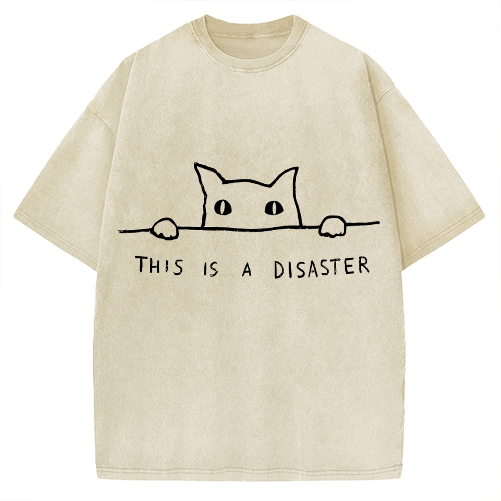 This Is A Disaster Funny Cat Vintage Washed T-shirt