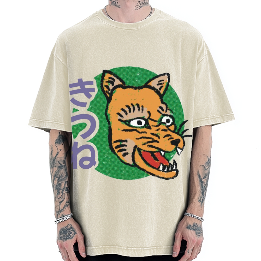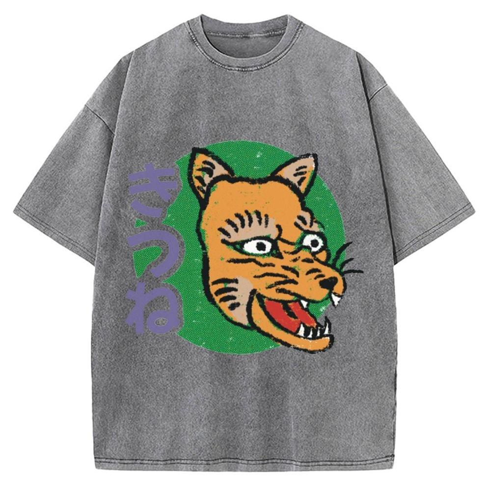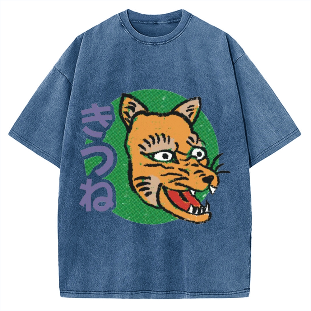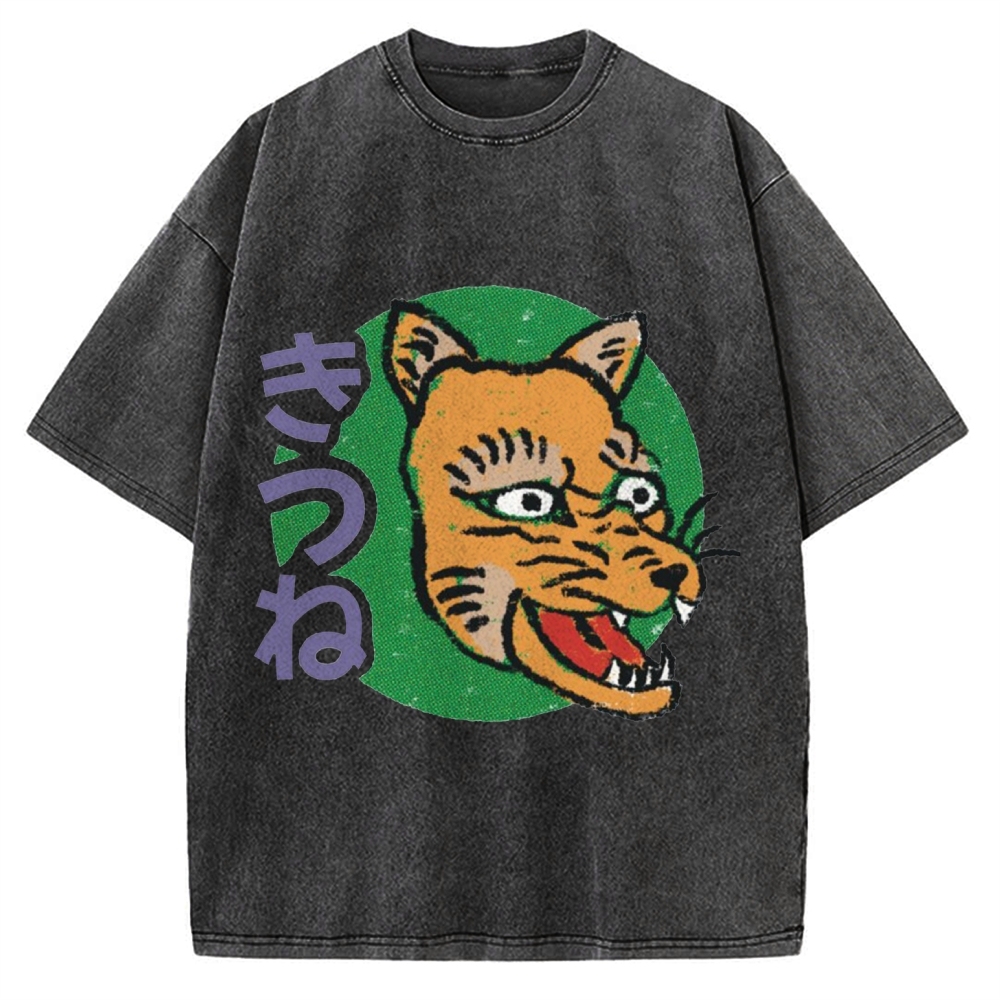 Ukiyo-e Style Fox Funny Painting Vintage Washed T-shirt
